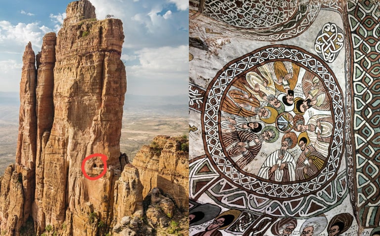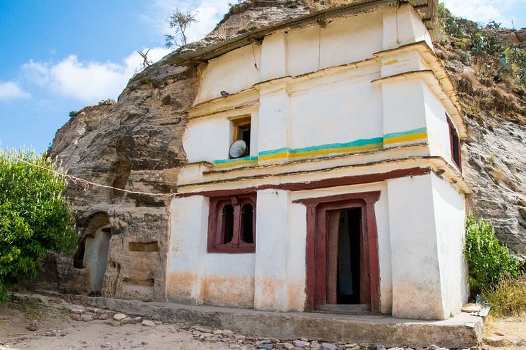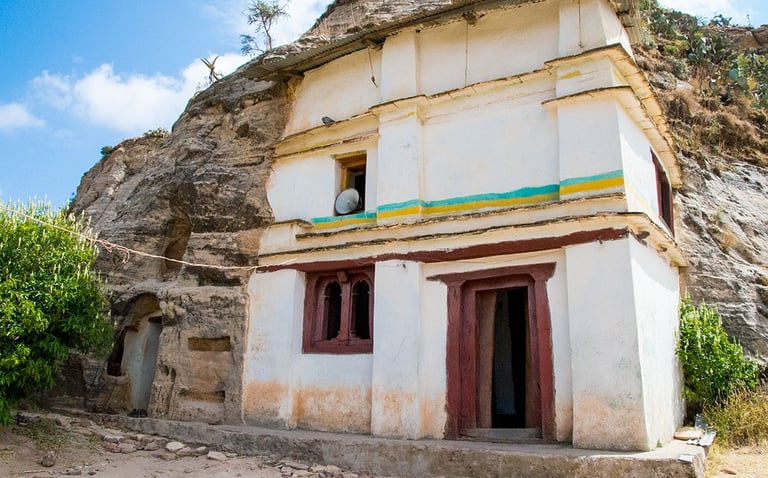 Ascension ensuite vers les églises de Debré Mariam et de Daniel Korkor, accessibles par une faille dans la falaise de Korkor. La première, creusée au flanc d’un petit cirque, est le plus grand monument du Geralta et conserve des peintures remarquables par leur ampleur et leur qualité.