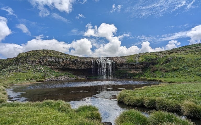 Le matin, au siège des Montagnes du Bale (village de Dinsho), quartier général du parc, vous commencez votre randonnée. Vous aurez l'occasion d'observer des mammifères endémiques et en voie de disparition tels que le bushbuck de Menelik, le nyala de montagne, le phacochère, le redunca ou encore le céphalophe gris. Vous pourrez également apercevoir des oiseaux endémiques d'Éthiopie comme le moucherolle abyssin, l’ibis caronculé et le chat abyssinien dans les bois de genévriers.