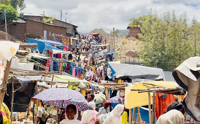 Arrivée à Gondar, capitale de l'Ethiopie du XVIIe au XIXe qui détient un riche patrimoine architectural.