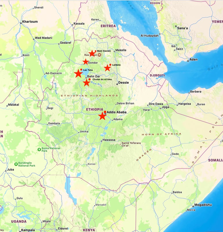 La légende éthiopienne : Addis Abeba, Le Nil Bleu , Lalibela