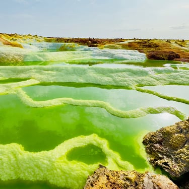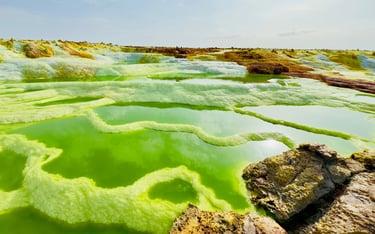 Réveil très matinal afin de profiter du lever du jour sur le lac de sel. Découverte du site de Dallol et de ses nombreuses formations étonnantes, puis randonnée à travers les zones les plus caractéristiques. Retour à Ahmed Ila.