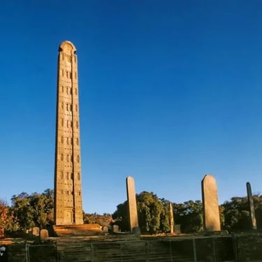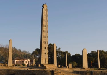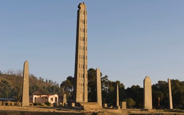 Route pour Axoum et découverte des vestiges axoumites : monolithes et inscriptions, chambres funéraires, ruines de palais et tombeaux.