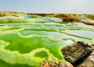 Le périple vous conduit ensuite vers le Danakil, l’un des déserts les plus extrêmes de la planète : l’ascension de l’Erta Ale, les salines infinies d’Ahmed Ila et les formations irréelles de Dallol révèlent les forces profondes de la Terre, brûlantes et minérales.
