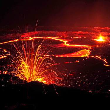 Courte ascension (environ 20 min) jusqu’au bord de la caldeira. Observation de l’activité volcanique et bivouac au bord du cratère.