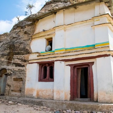 Dans l’après-midi, visite de l’église Abune Yemata Guh. Poursuite de la randonnée à travers des paysages à la fois grandioses et empreints de spiritualité, jusqu’à l’église de Guh, consacrée à Abune Yemata, l’un des neuf saints d’Axoum. Creusée au flanc d’une paroi rocheuse dominant un vide de plus de 50 mètres, elle est ornée de peintures dans la tradition de Debré Sion, illustrant la procession du Saint. Environ 2 h de randonnée.