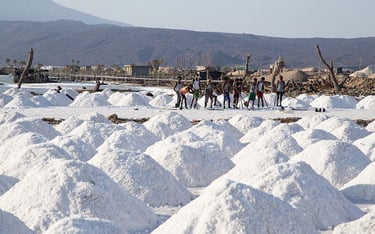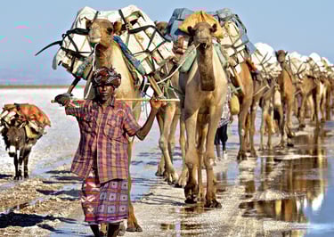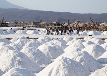 Réveil très matinal afin de profiter, depuis le sommet de la caldeira, du lever du jour. Descente pour rejoindre nos 4x4. Traversée du désert du Danakil du sud vers le nord, alternant piste et hors-piste, jusqu’à Ahmed Ila, où vivent les travailleurs du sel. L’après-midi, découverte du site de Dallol et de ses formations géologiques spectaculaires, suivie d’une randonnée pour explorer ses zones les plus caractéristiques. Retour à Ahmed Ila.