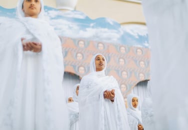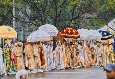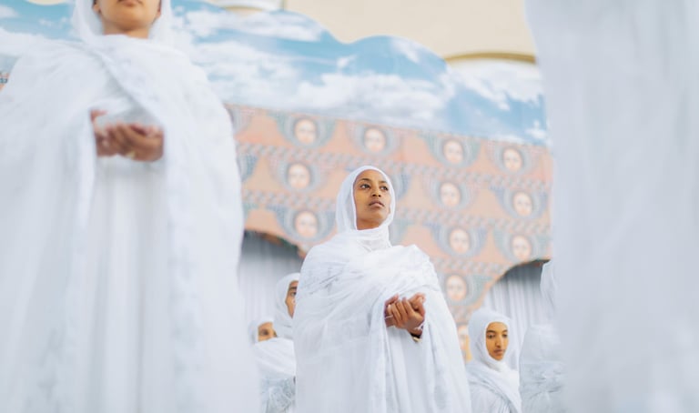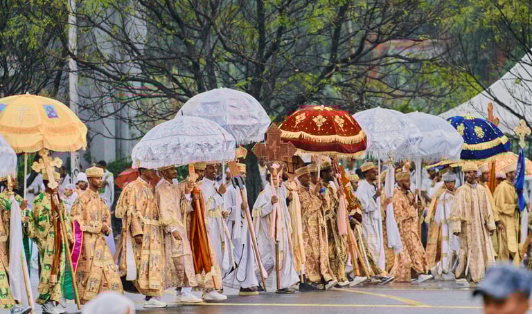 La vie spirituelle est au cœur de l’identité éthiopienne. La majorité des habitants sont chrétiens orthodoxes (environ 43 %), une foi profondément enracinée depuis l’Antiquité. L’islam est également très présent (environ 30 %), surtout dans l’est et le sud. On trouve aussi des communautés protestantes, catholiques et animistes.