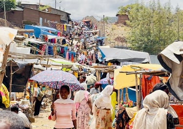 Arrivée à Gondar, capitale de l'Ethiopie du XVIIe au XIXe qui détient un riche patrimoine architectural.