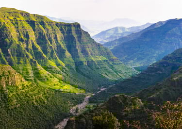 Une érosion massive au fil des siècles a formé sur le plateau éthiopien un des paysages les plus spectaculaires au monde avec des pics, des vallées et des précipices atteignant jusqu'à 1500m de profondeur.